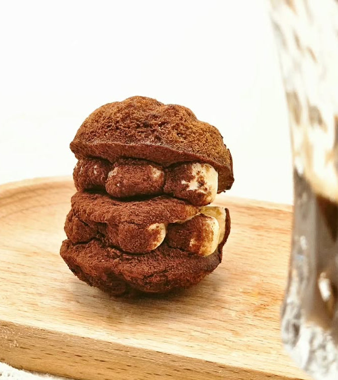 將成個瑪德蓮浸左落咖啡,再加入特配既馬斯卡彭奶霜,為左增添風味,奶霜仲加左瑪薩拉酒😏,中間夾埋浸左咖啡既消化餅,完全係Tiramisu既化身